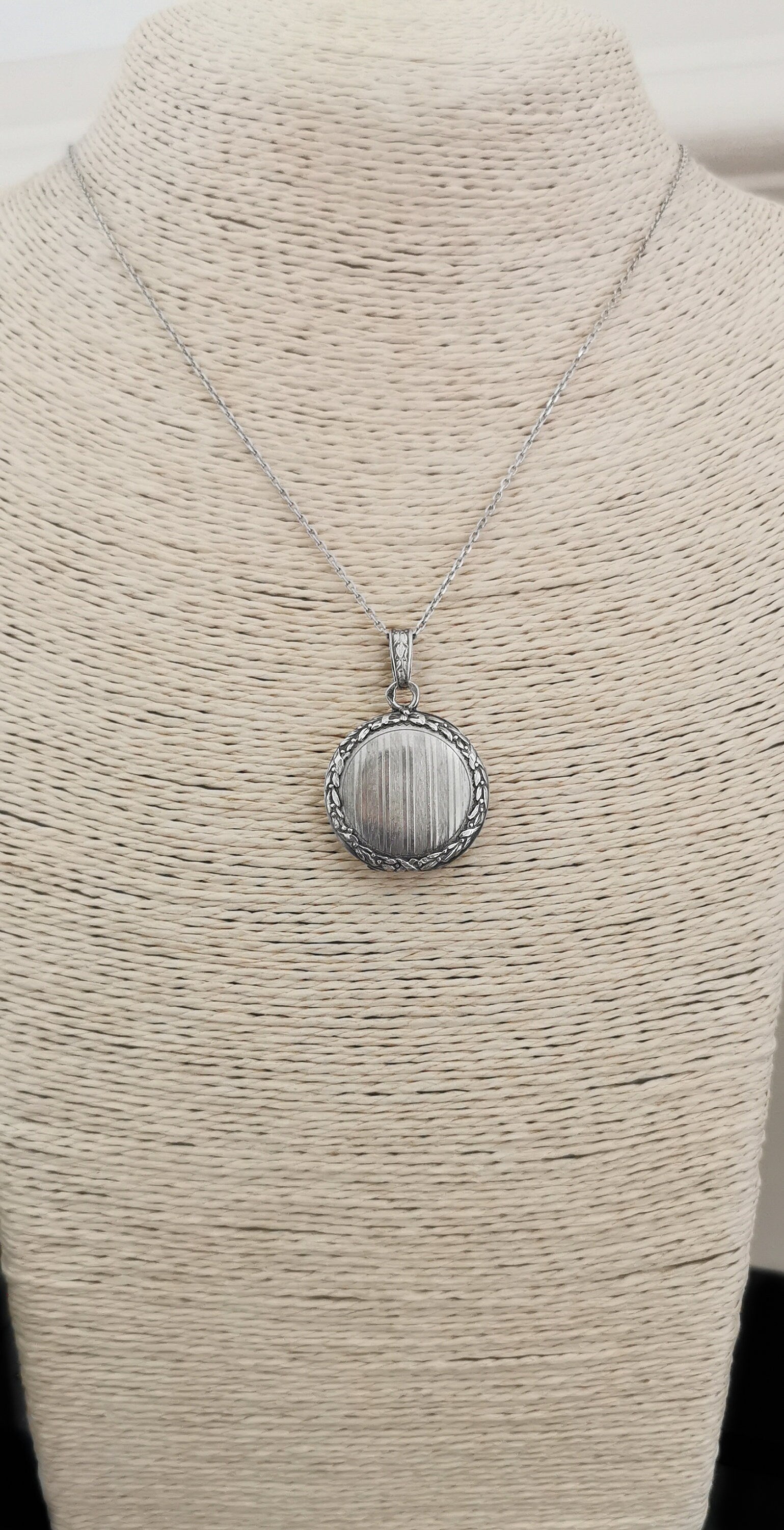 Antique French 1900s Edwardian silver photo locket with reed and cross hatch frame Photo Holder Gift for him Gift for Her Vintage pendant