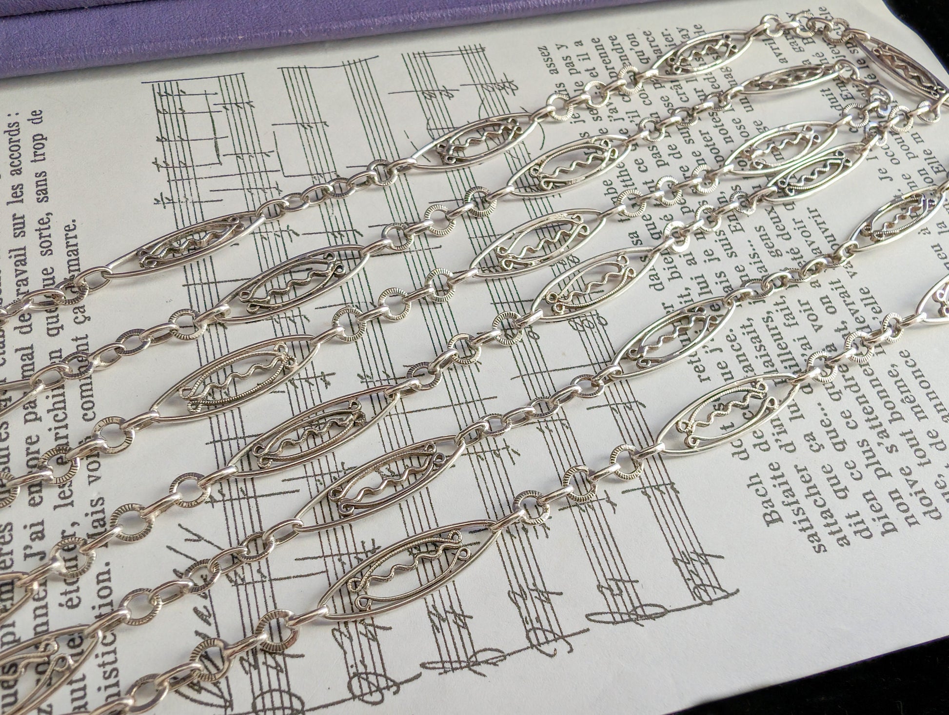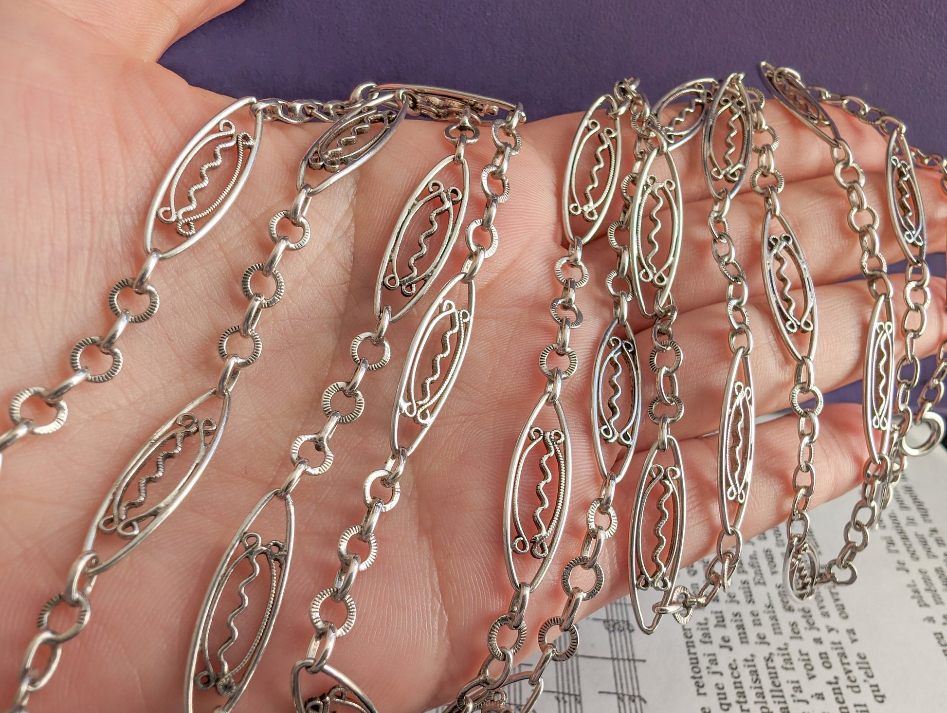 Antique French Silver Filigree Longuard Necklace: Art Nouveau Chain