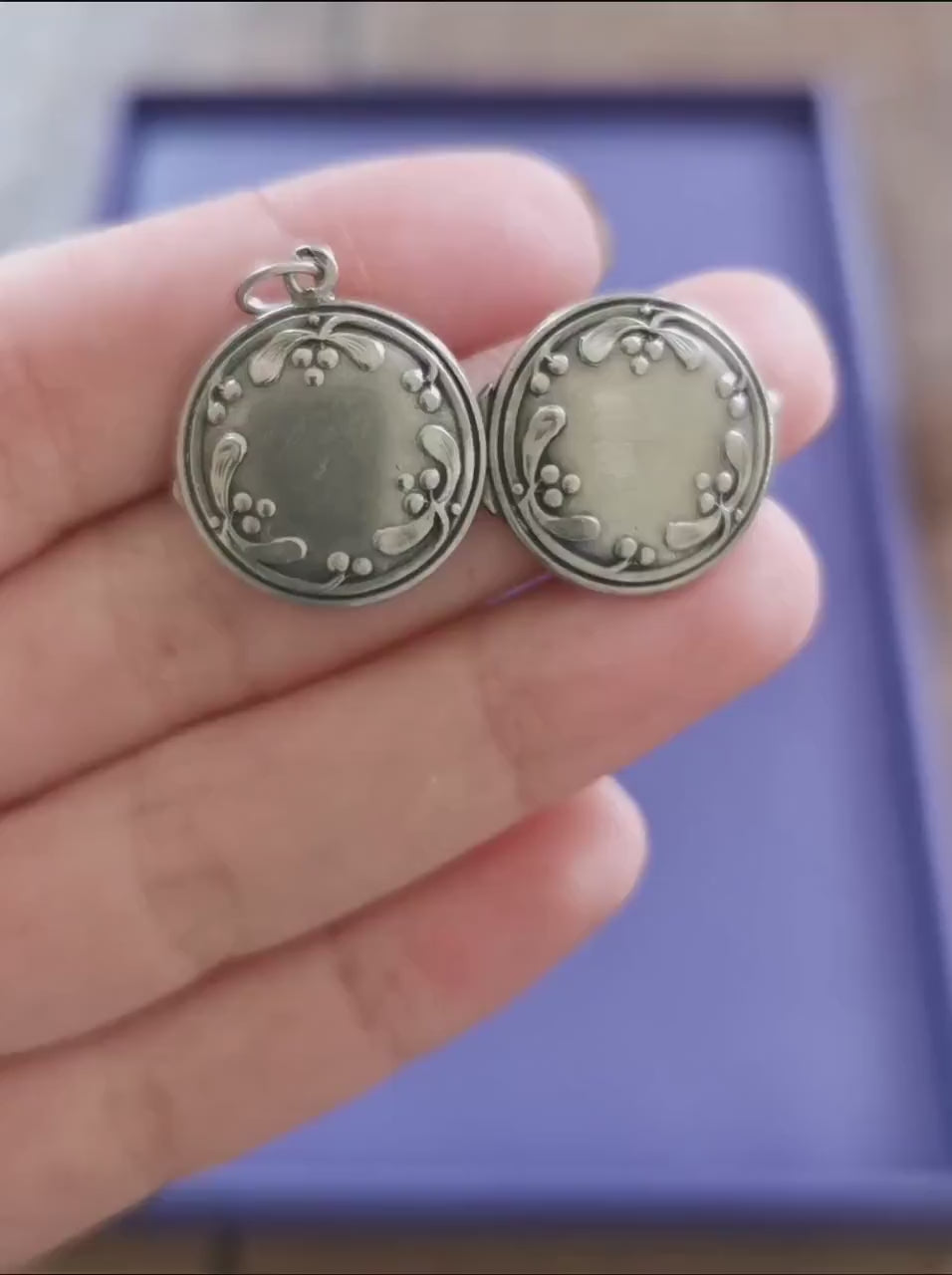 Antique Silver Art Nouveau floral Locket French antique locket Vintage photo holder gift for her
