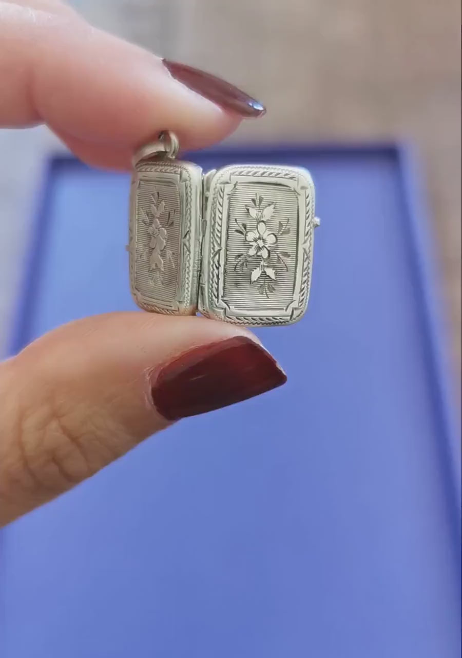 Antique XIX Century French Silver Art Nouveau Locket with glass partition 1900s Art Nouveau Silver Engraved Photo Holder Gift for Her
