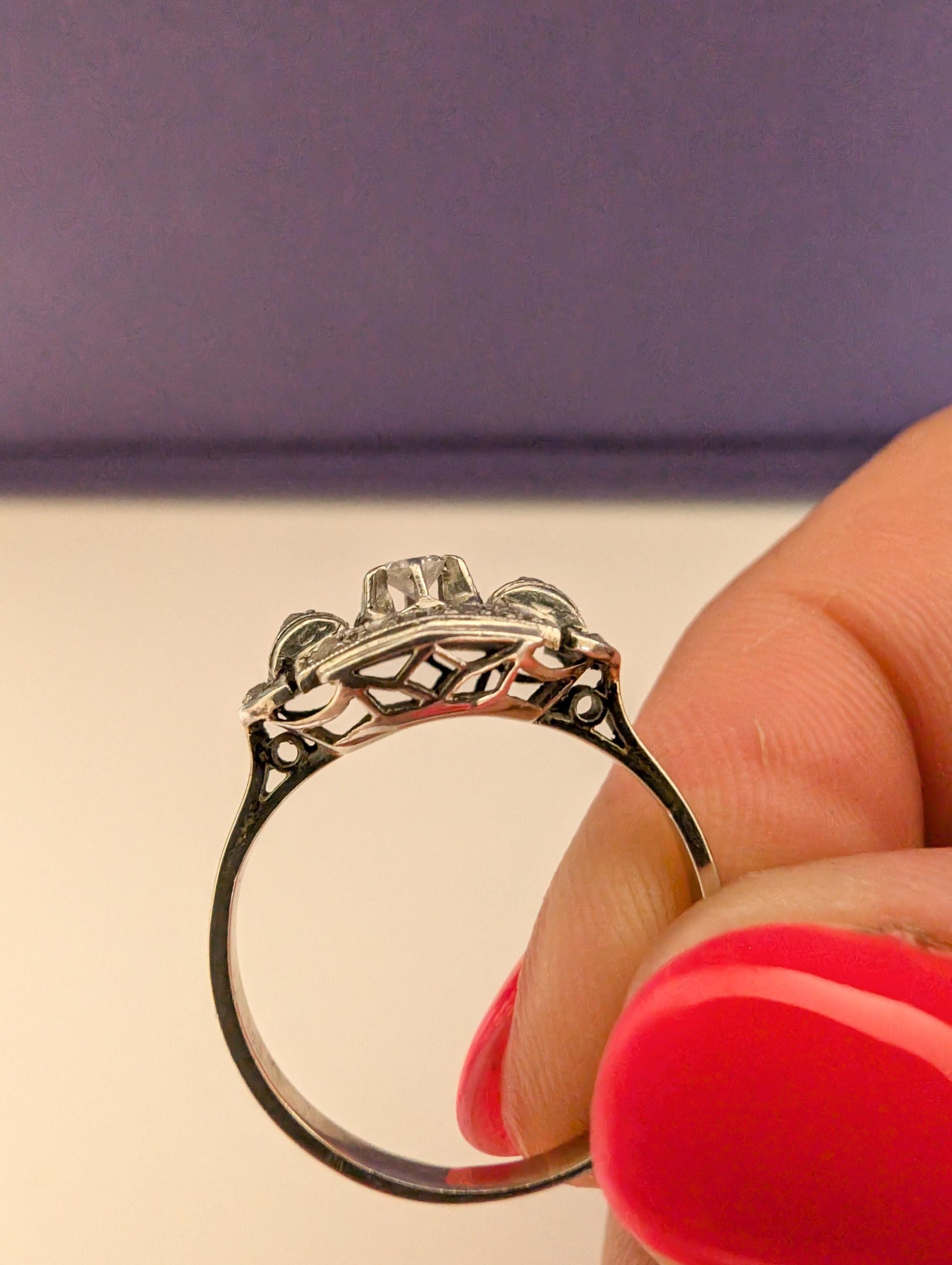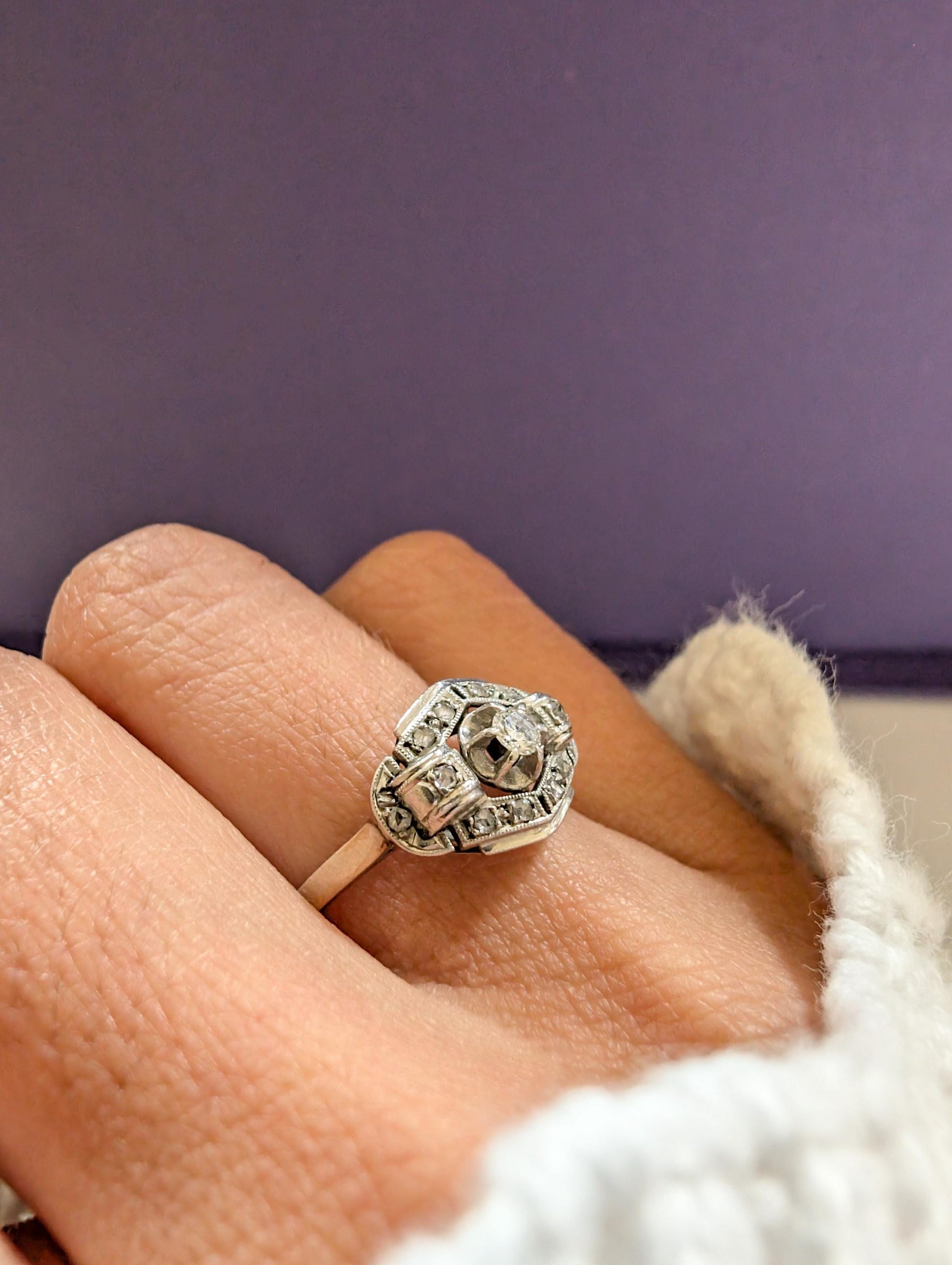 This ring is not just a mere accessory; it's a treasure that symbolizes love, elegance, and the brilliance of an era. Rest assured, this remarkable Art Deco masterpiece will not only catch the eye but also capture the heart. Its allure, when beheld in reality, surpasses all expectations, making it the epitome of timeless allure.