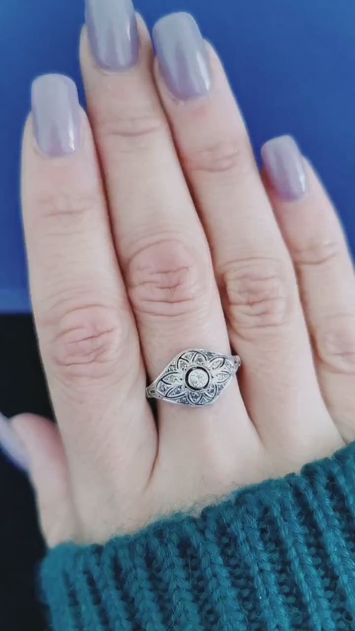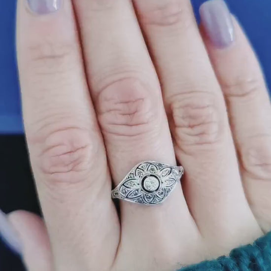 18K Diamond Art Deco Ring 18ct white gold and diamond ring Antique 18K Diamond Ring Gold and Diamond Engagement Ring Gift for Her