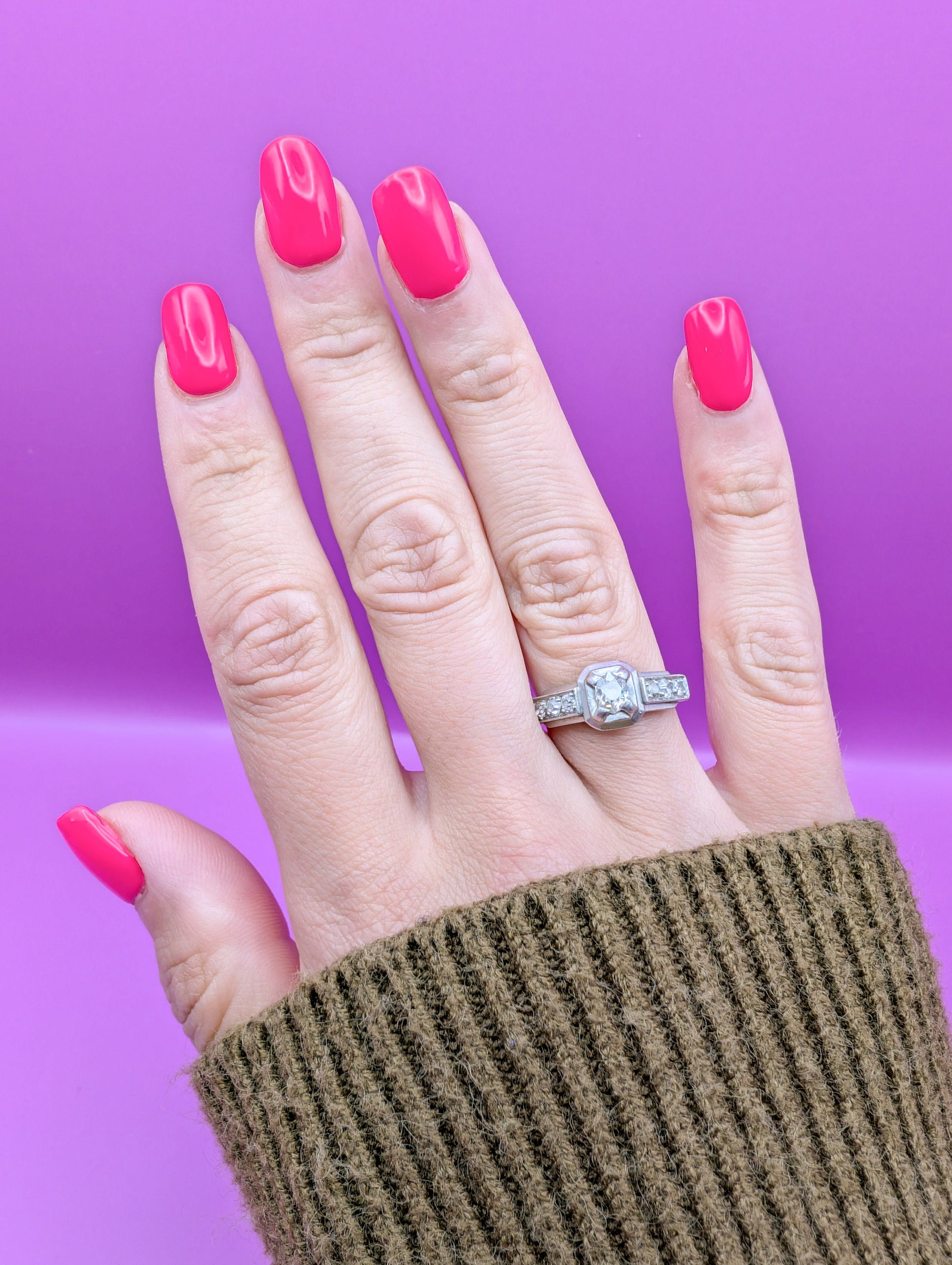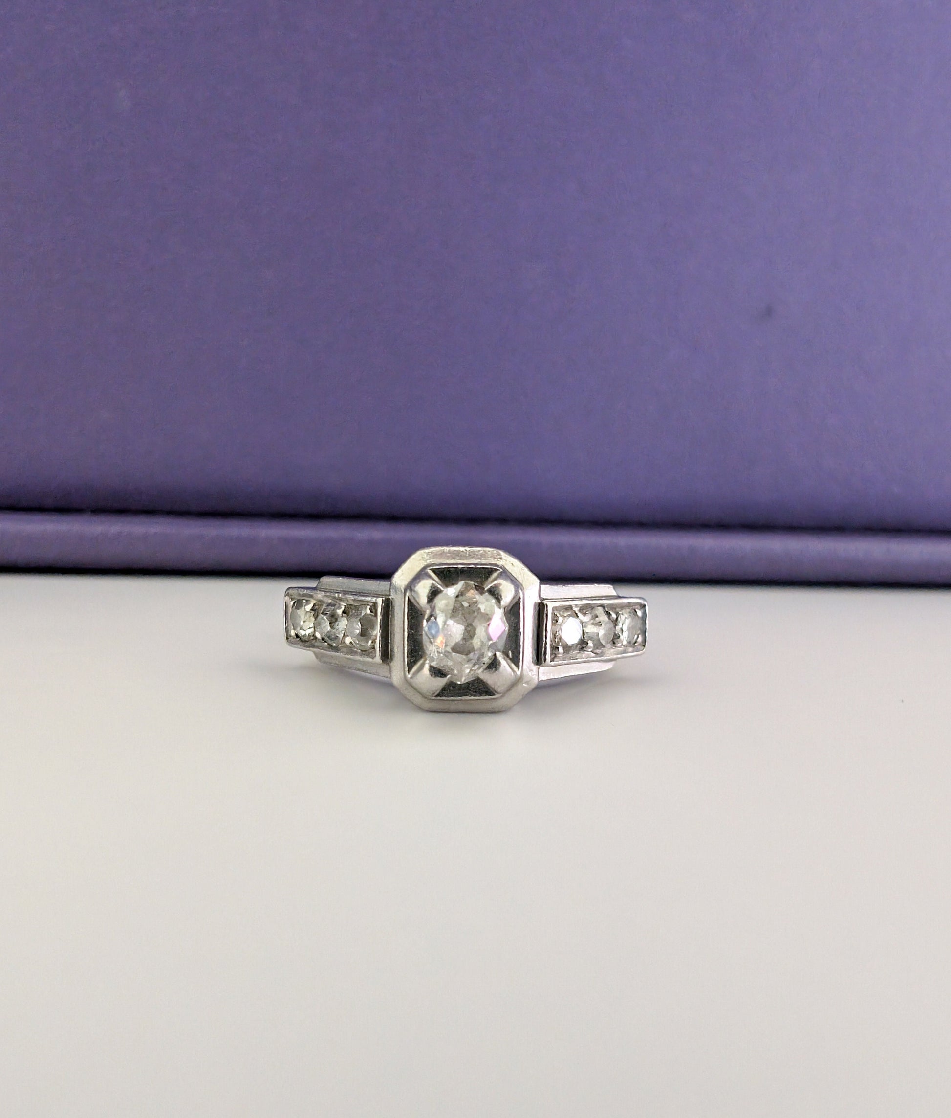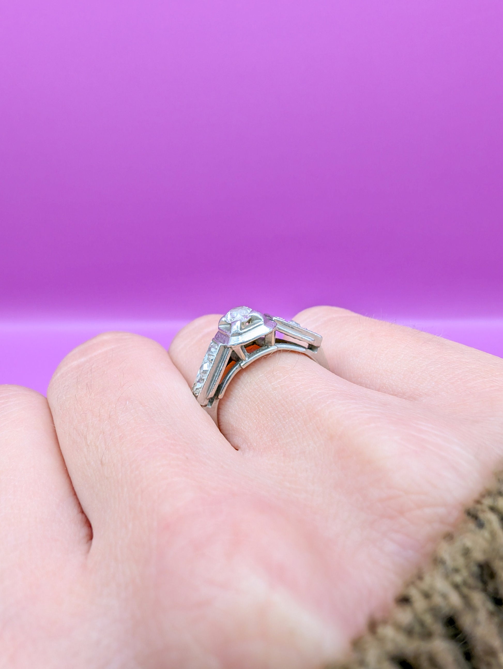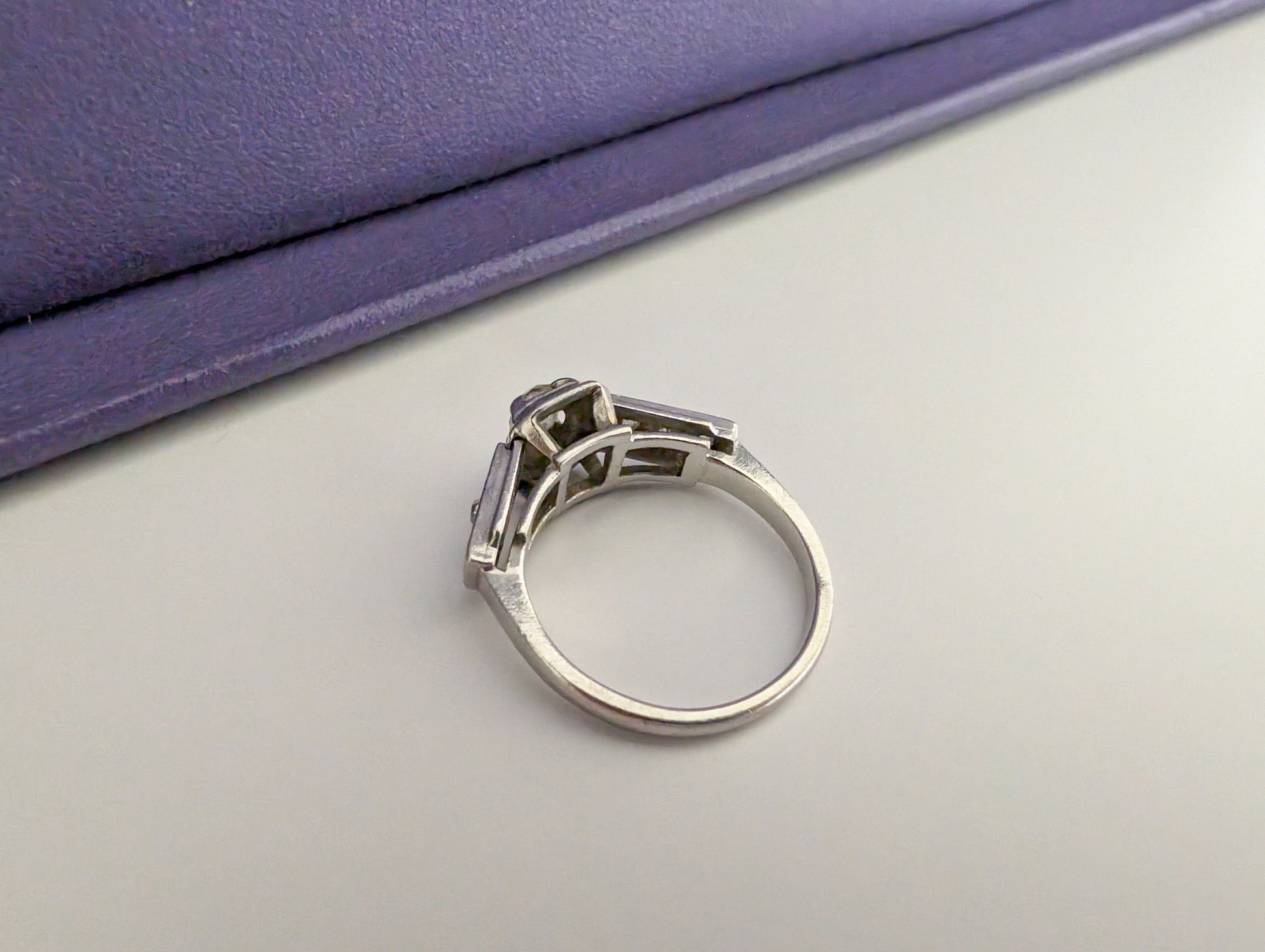This ring can be worn with a variety of styles, adding a touch of class and luxury to any outfit. Whether as an engagement ring or a standout piece in a jewelry collection, it is a true piece of history that embodies the elegance and glamour of the Art Deco era.