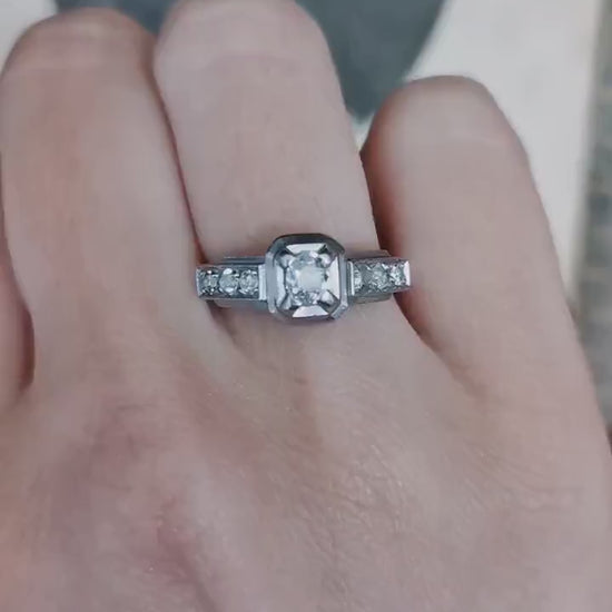 Art Deco Diamond Engagement Ring: Platinum, Rose Cut Diamonds, Circa 1920