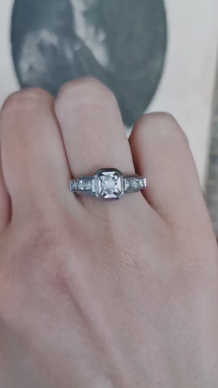 Platinum Diamond Art Deco Ring Platinum diamond ring Antique Diamond Ring Diamond Engagement Ring Gift for Her