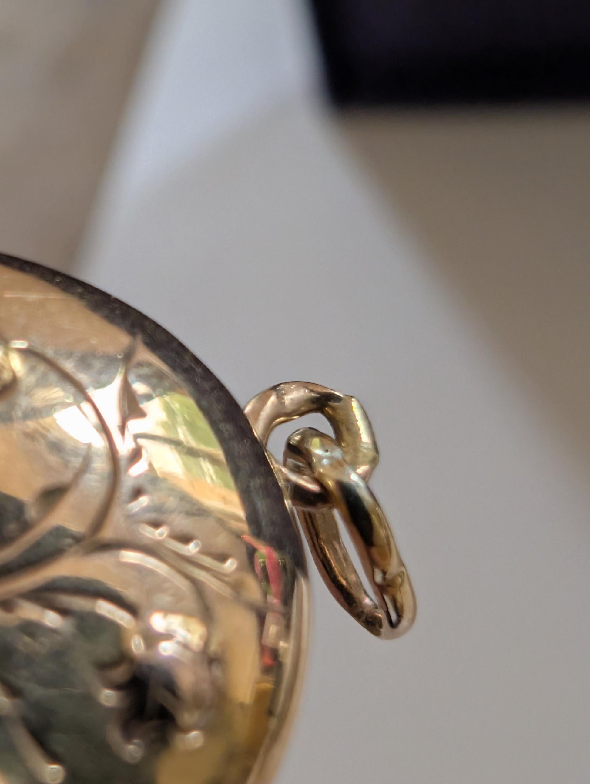Absolutely exquisite, this 18K Art Nouveau solid Gold Locket captures the essence of early 1900s craftsmanship. Crafted in captivating yellow gold with a mirror effect shine which reflects the surroundings, the locket showcases a floral design held into its branches engraving .