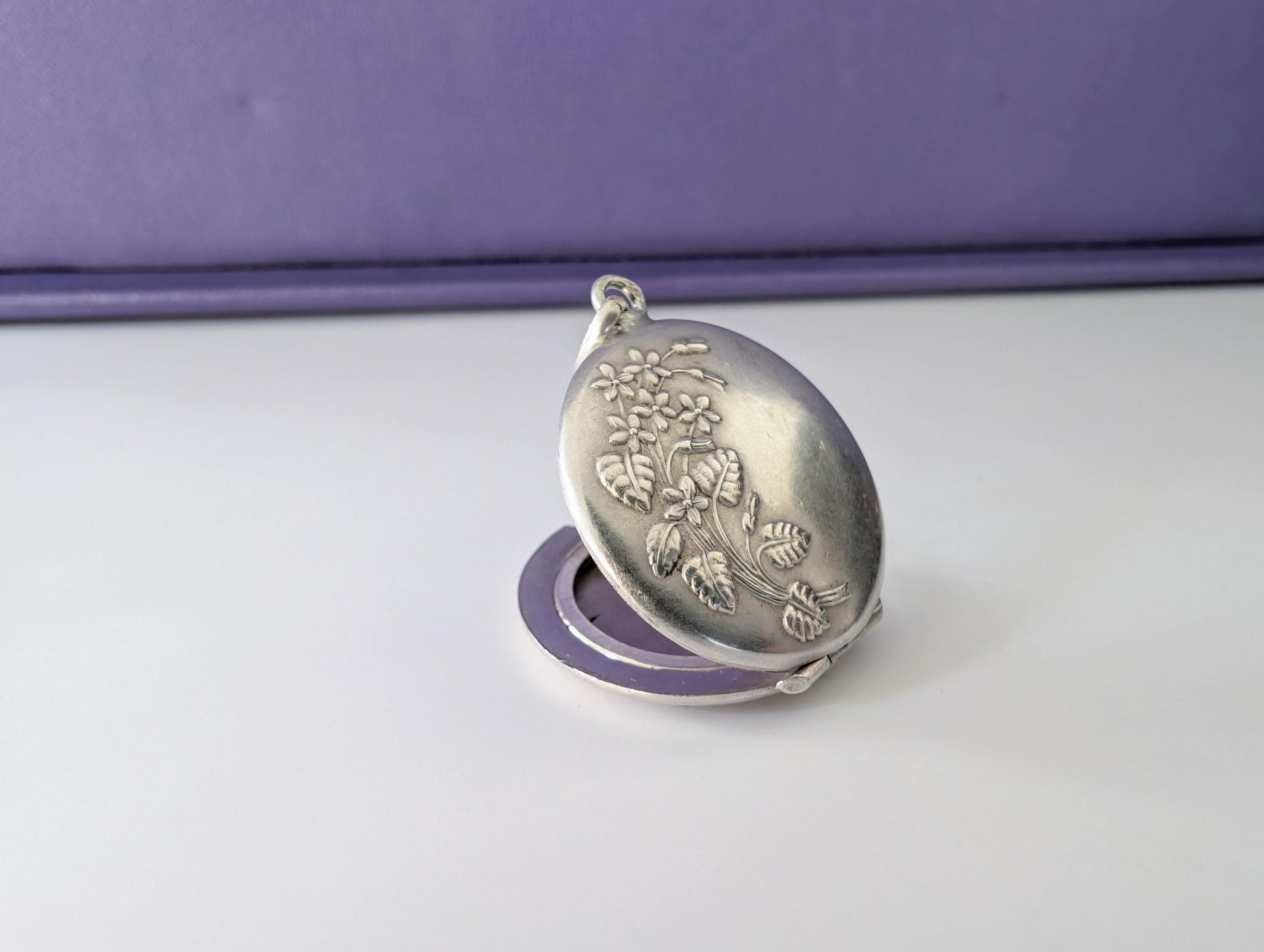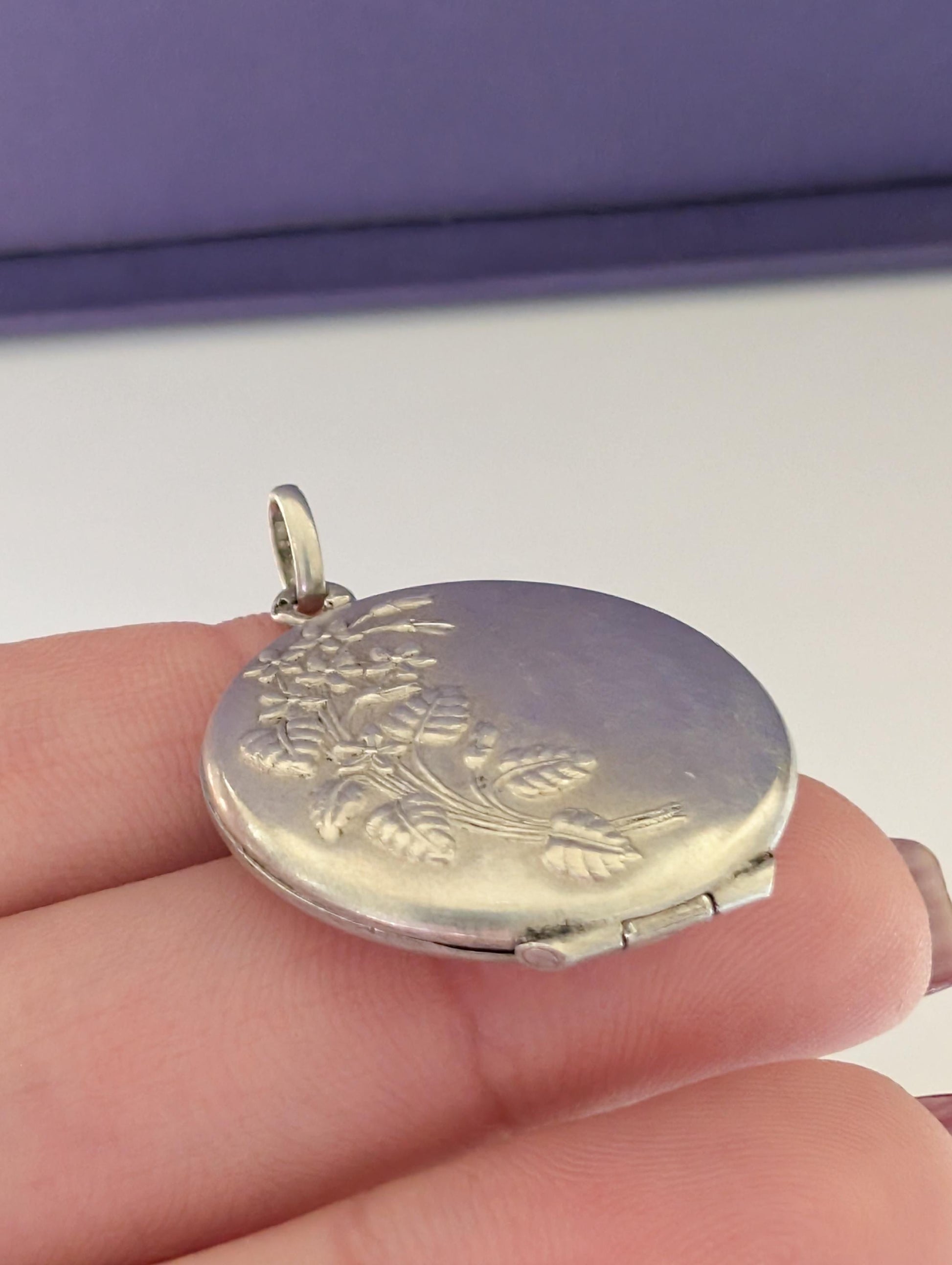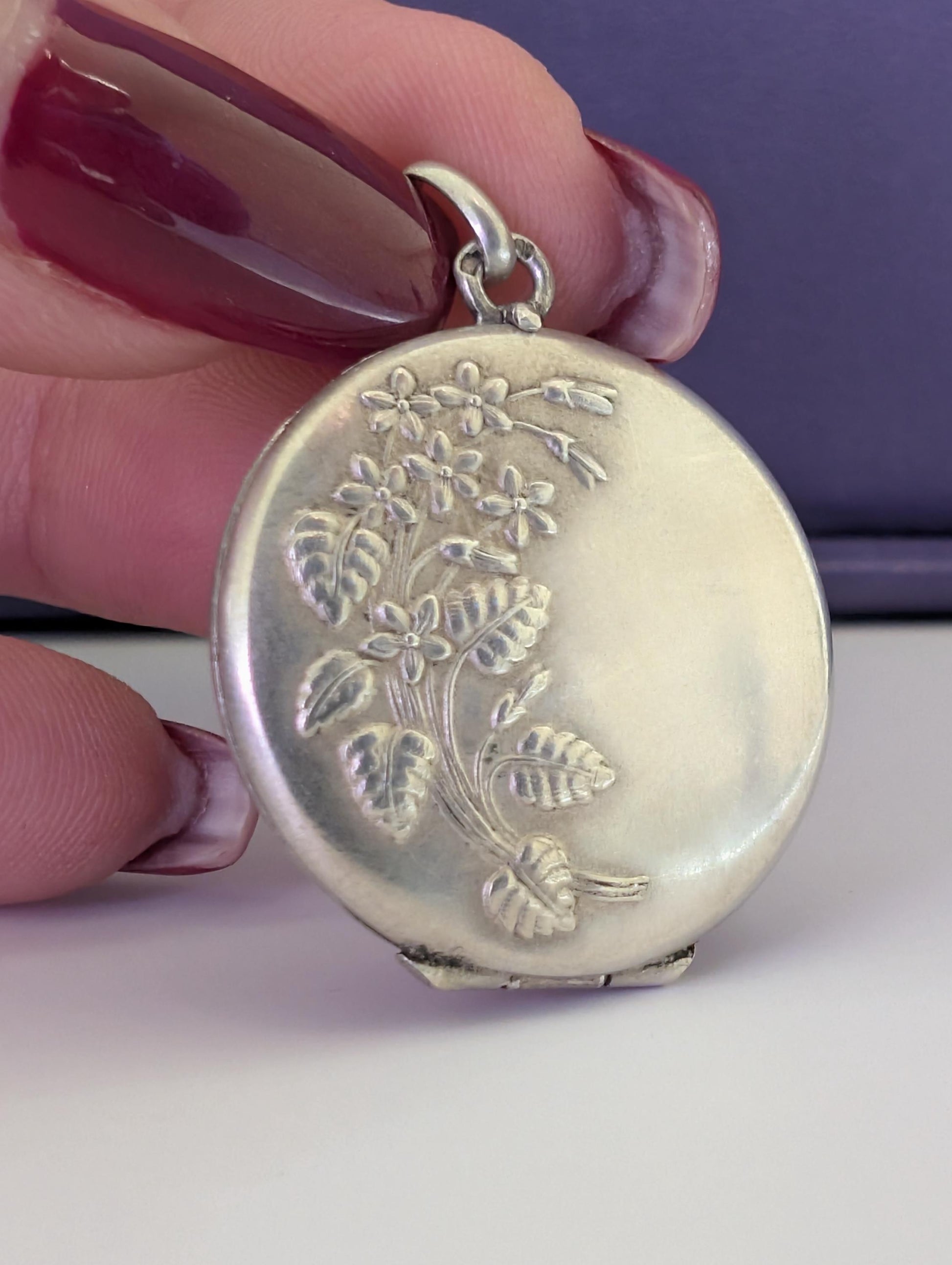 Art Nouveau Silver Locket: Repousse Floral Photo Pendant