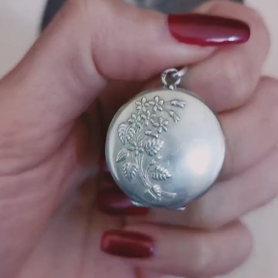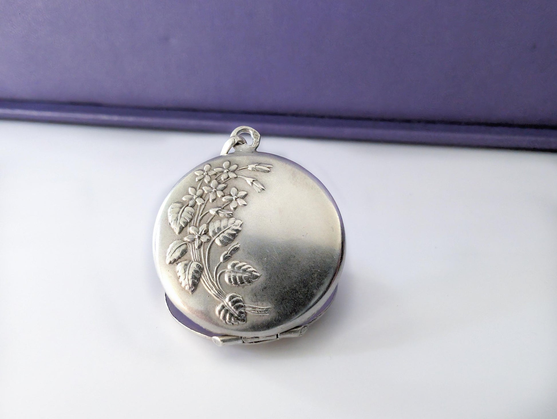 Art Nouveau Round silver Locket with Repousse Hawthorn branch Antique French Photo Pendant Antique Art Nouveau silver Locket Gift for her