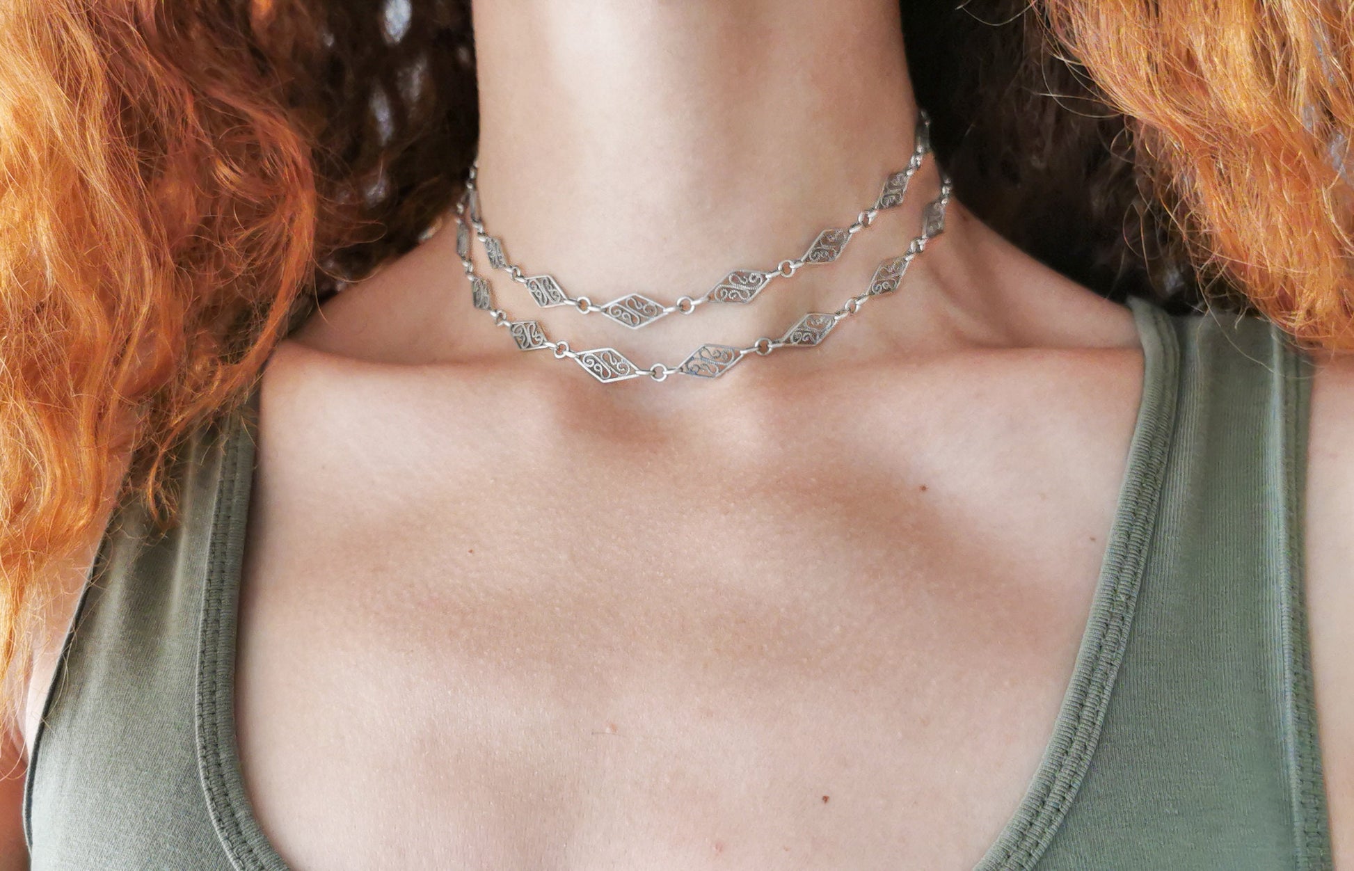 This versatile and high-quality necklace offers you a myriad of styling possibilities. Wrap it twice around a small neck like mine for a chic and sophisticated look, or leave it in its original form, and let it grace your neck as a long and eye-catching chain, effortlessly enhancing any ensemble.