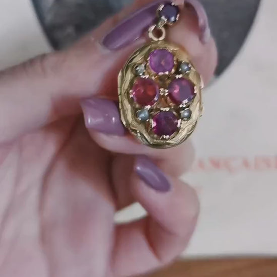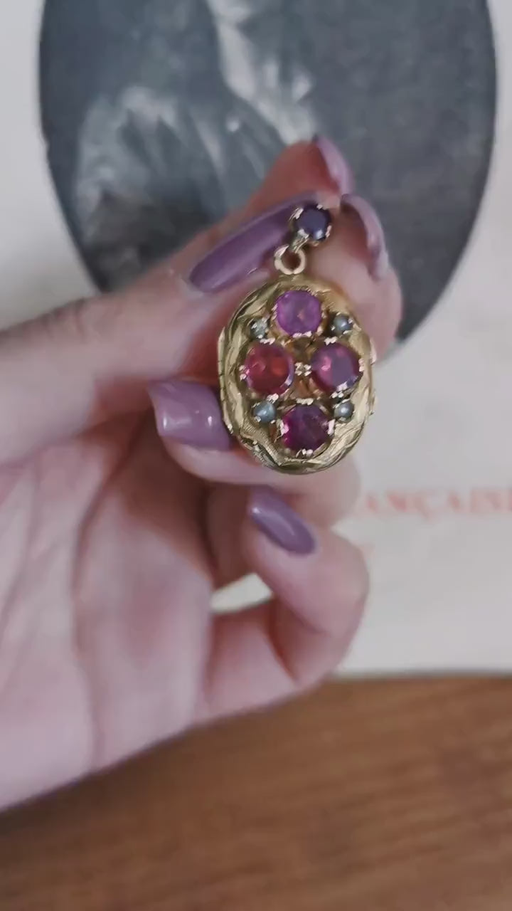 Rare 1850 Victorian 18k Gold Locket Glass Partition Tourmaline & pearl stones Antique 18ct gold Napoleon III Locket Guilloche Antique Locket