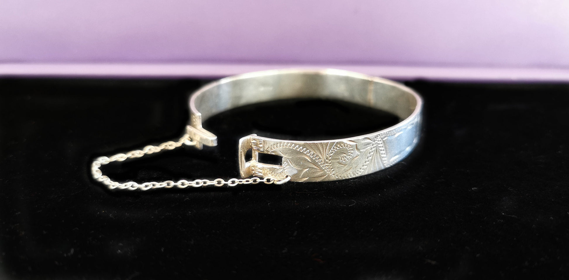 Victorian Antique Silver Bangle Bracelet with Box Clasp XIX Century bracelet