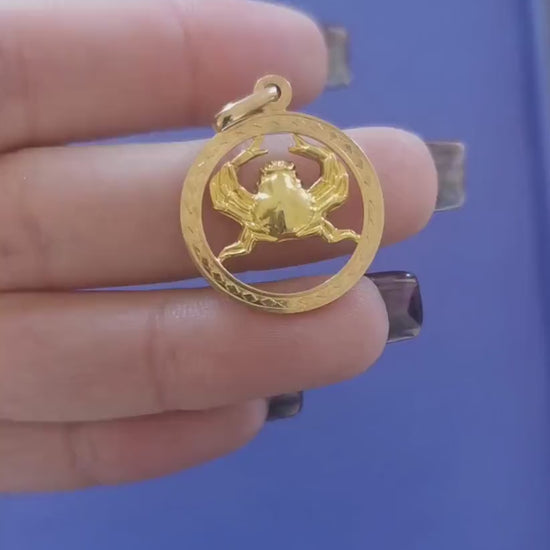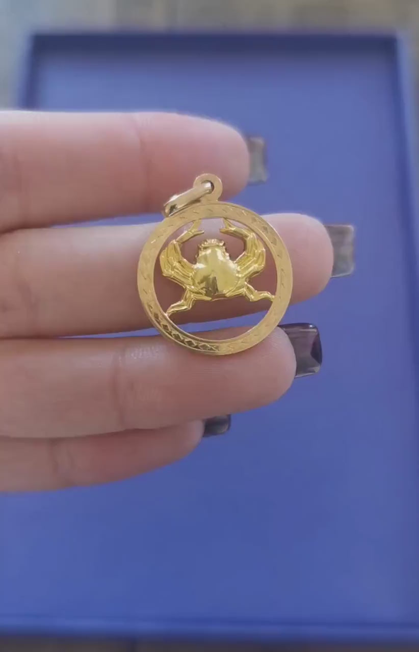 18 K Vintage zodiac pendant - Vintage Cancer charm in 18 ct yellow gold - star sign pendant - perfect gift - Gold Cancer medallion July