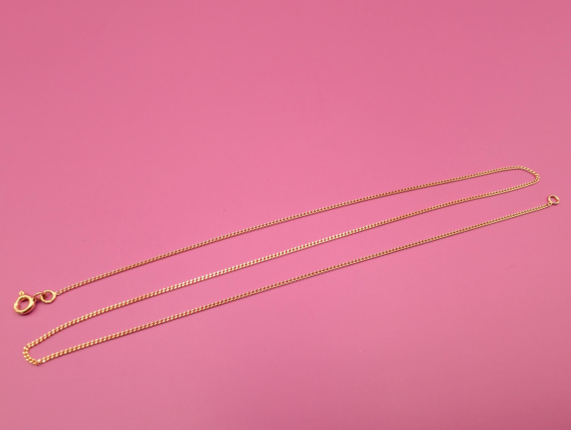 This chain can match with any locket or pendant of your choice for a secured wear. This chain has a stunning sunny yellow gold color. With a size of 17.32 inch / 45.4 cm it will enhance your neck bones.