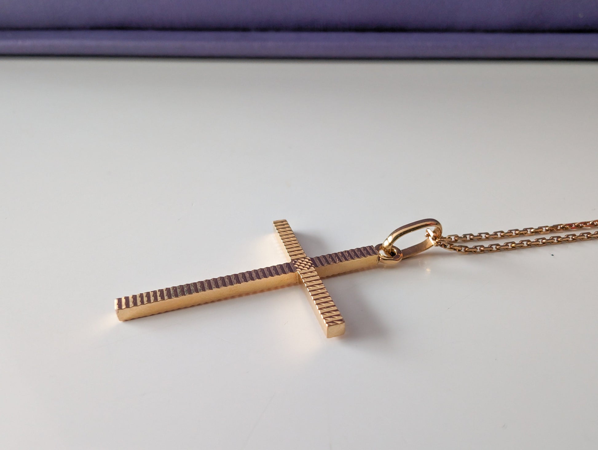 Vintage 18K Solid Gold Cross Pendant: French Religious Jewelry