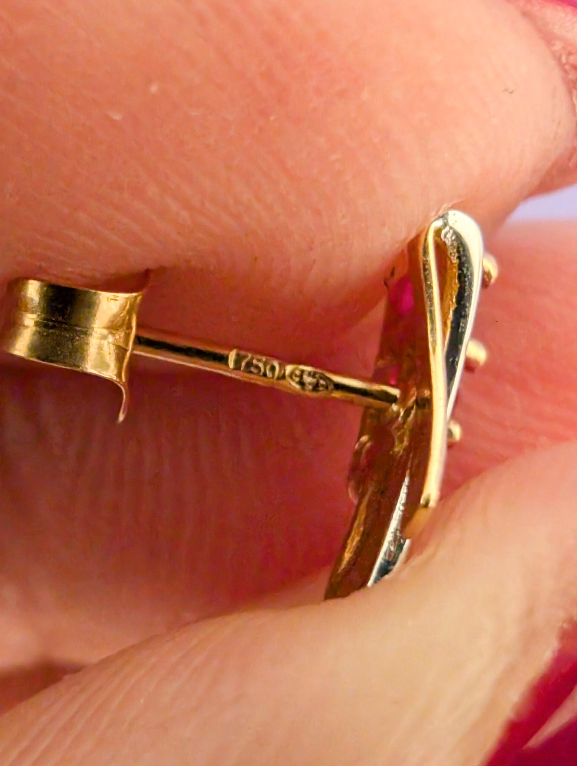 This pair is hallmarked with the 750 hallmark proof of its 18K gold composition, and has been carefully inspected and tested to certify its authenticity.